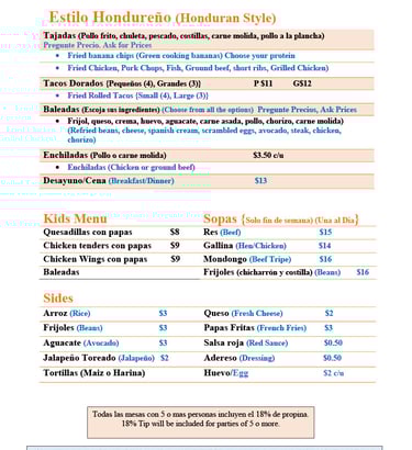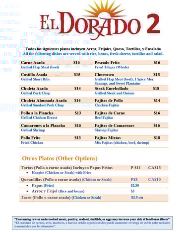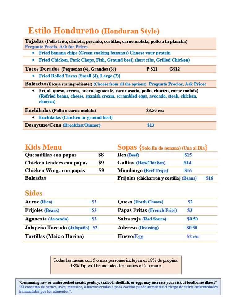 Our food menu is a perfect blend of traditional latin flavors and fresh ingredients.